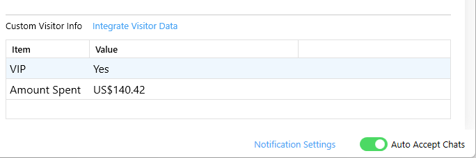You can easily send data from your own business system to ShenDesk, linking Visitor identities and displaying relevant business information to Agents. Data can be transmitted simply and directly via URL parameters, or passed using JavaScript when integrated into your website.